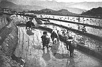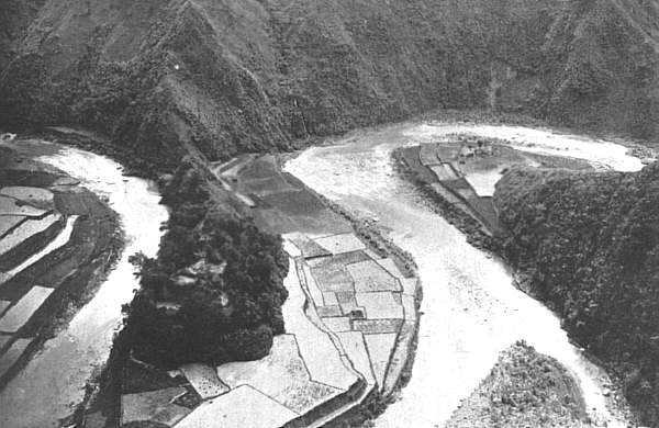 Rice Fields, Dukligan District An Ifugao will put a rice field wherever there is a water supply - whether it be necessary to append it to a steep cliff or to control a river. | |