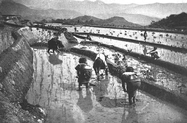 correct in his cultivation. All the work in connection with rice culture, from the time the fields he prepared for sowing, except the cleaning of the terraces and dikes, is performed by women.