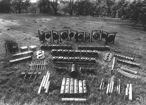 "...But the international popularity of Filipino Musicians is more a tribute to their ability to imitate Western pop than anything else. Even what is locally known as Original Pilipino Music or OPM is seldom original, being "Pilipino" only in the broadest sense that it is music made by Filipinos. The lyrics might be in Tagalog, but in structure ans style most OPM is often indistinguishable from Western pop. In the new global information society, music has been reducedto product - something to be manufactured, packaged and thrust into the gaping maw of the consumer - like processed cheese or canned sardines. A songwriter writes a song (in Los Angeles or Manila, it doesm't really matter) and if it conforms sufficiently to pop conventions, the massive machinery of the recording industry is set in motion. Before you know, the song is blaring out of 30 million radios from Batangas to Sitangkai. Kontra-Gapi offers one alternative to this syndrome. The medium is the message, and the message is clear: it is high time we broke away from the overwhelming cultural dominance of the West and returned to our roots. The group's name is not just an acronym. Gapi is an old Filipino word meaning bound, vanquished, conquered. Kontra-Gapi Kontra-Gapi therefore seeks to free Filipino musical consciousness from the stranglehold of Western-oriented pop, and from the stiftling notion that only specialists have the ability to create music. the vehicle that Kontra-Gapi has chosen for this task is the gamelan..."Eric S. Caruncho, Sunday Inquirer Magazine, Vol. 8, No. 24, August 18, 1991 "In all aspects, Kontra-gapi's music is radical. The instruments are South East Asian in origin, many of which are the work of craftsmen from Davao, the Cordillera, Tuguegarao, and many parts of rural Philippines and Asia. The nature of the instruments create music totally different from america's and Europe's Top 40 hits. They emphasize rhythm rather than harmony. When played by Kontra-gapi, they stir up a frenzy complexly structured percussion and string sounds - complementary, interweaving and rhythmic - enticing the body to unleash itself. There is beat, force, energy. If this is music of our forefathers, they must have been deeply in touch with their spiritual selves, for how Gamelan stirs the emotions, the senses, producing a blissfull yet frenzied nirvana-like state that arises from the depths of being! This is certainly us. We touch base with the elements or spirits that once moved our Asian ancestors. As such, it opens new worlds, new visions, arouses sensibilities that pop music fails to do. We see and feel our Asian-ness coming to the fore. So Asian in structure is Gamelan that it may sound like noise to the untrained, Western ear. 'If you listen to music without melody, or with several simultaneous melodies, your first reaction is to freak out,' explains Abraham. But this too shows that we have become so conditioned to the Western idea of music that we now mistake melody for music. Abraham sees today's Filipino music as 'entrapped by Western structures.' Remove the Tagalog lyrics and you can't distinguish it from music from California, he says. 'You have to find a way of releasing yourself from the entrapped. There are so many different things to choose from. Bakit laging hamburger at hotdog ang pinipili mo, mayroon namang sinigang (Why choose just hamburgers and hot dogs when you can have sinigang)?'. Gamelan music is radical too in the sense that creating music is a community activity, not exclusive to trained musicians and singers. 'We all have the ability to create music', he says...."Joji B. Balcita, The Evening Paper, September 10, 1996