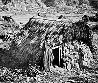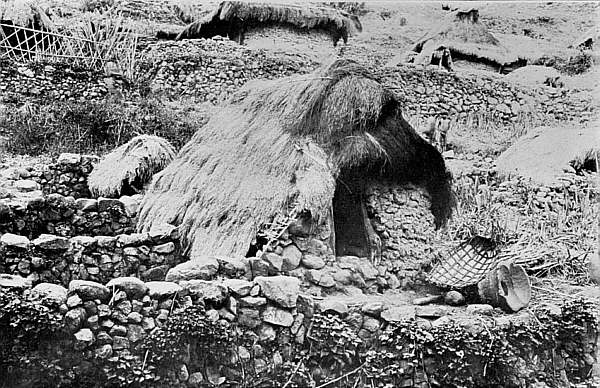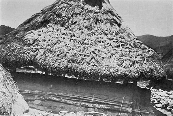 | Bontoc Dwelling, The KAT-YU'-FONG, a Widow's House, Showing Pigdens which Extend Beneath It |