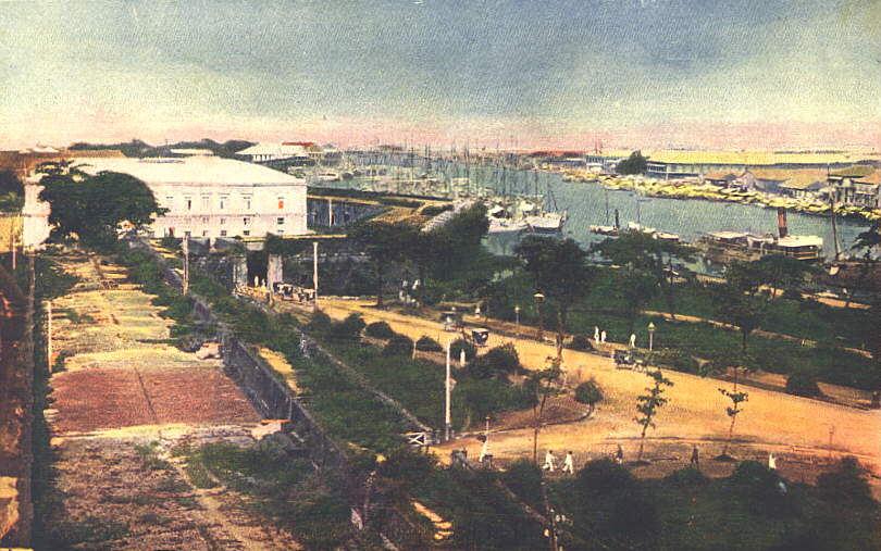 "View of Pasig river. The main avenue is known as "Paseo de Magellanes." Binando [Binondo], a portion of New Manila lies across the river. The large white building is the former Spanish Treasury. Across the river are the American's quartermaster stores."